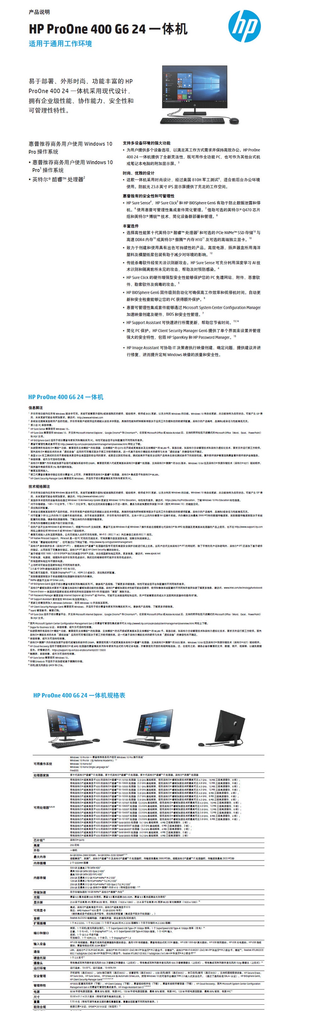 惠普ProOne400G6 一体电脑 NewCorei5-10500T(2.3G/12M/6核)/8GDDR42666/256SSD+1TB/Windows10Home64位、23.8寸FHDNTAiO三年保修