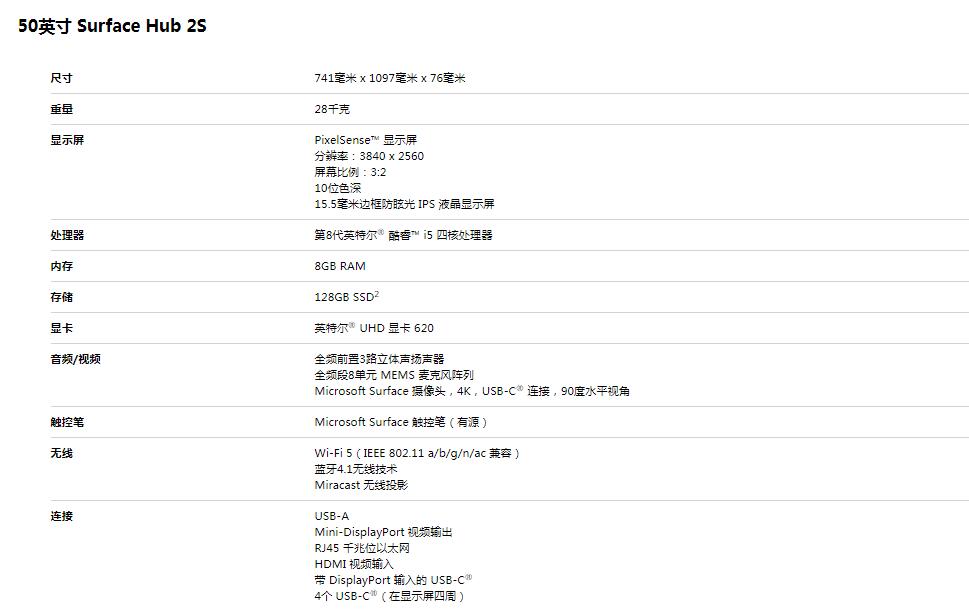 微软 50英寸 Surface Hub 2S 商用版(包含1个4K摄像头、1支触控笔)第三方移动支架/Microsoft Teams Meeting Room授权 保修两年