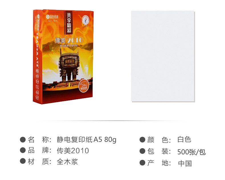 传美2010复印纸 A5 80G 500张/包 单位:包