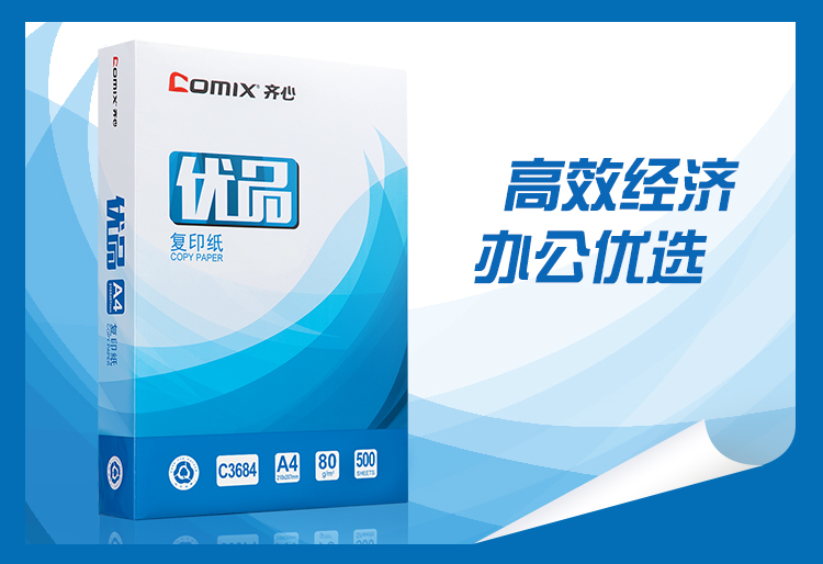 齐心C3684-5优品复印纸 A4 80g 500张/包 5包/箱 单位:箱