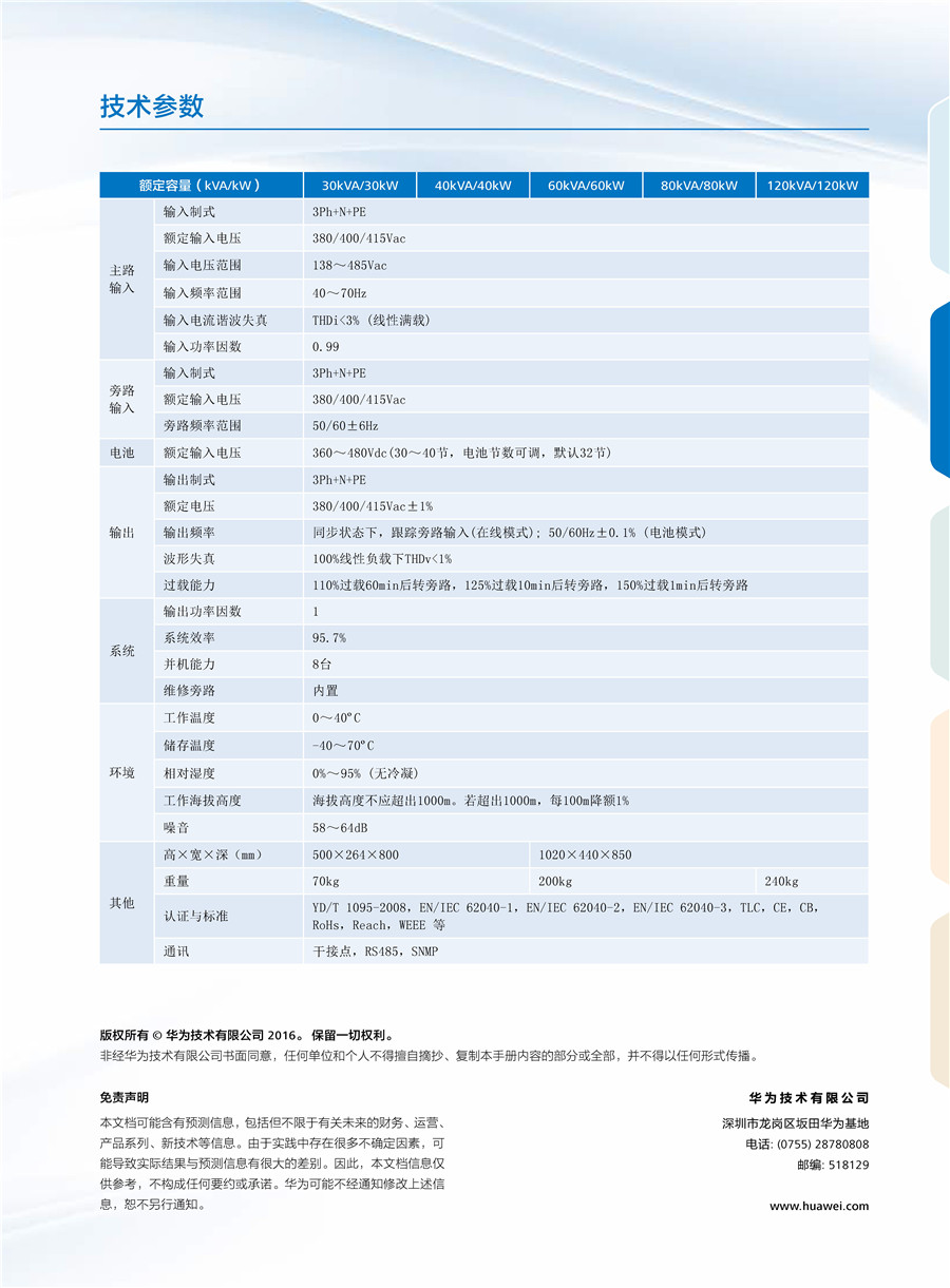 华为UPS5000-A-30KTTLMF120-12免维护蓄电池+定制电池柜+安装辅材+安装运输+三年免费质保/套