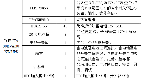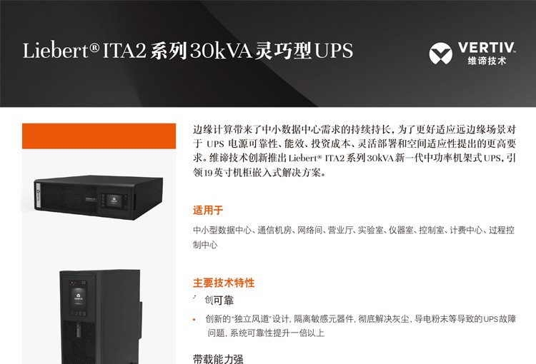 维谛ITA2-30KVA/30KW UPS +网络管理卡+蓄电池+20位电池箱+电池开关箱+辅材+安装+三年免费质保/套