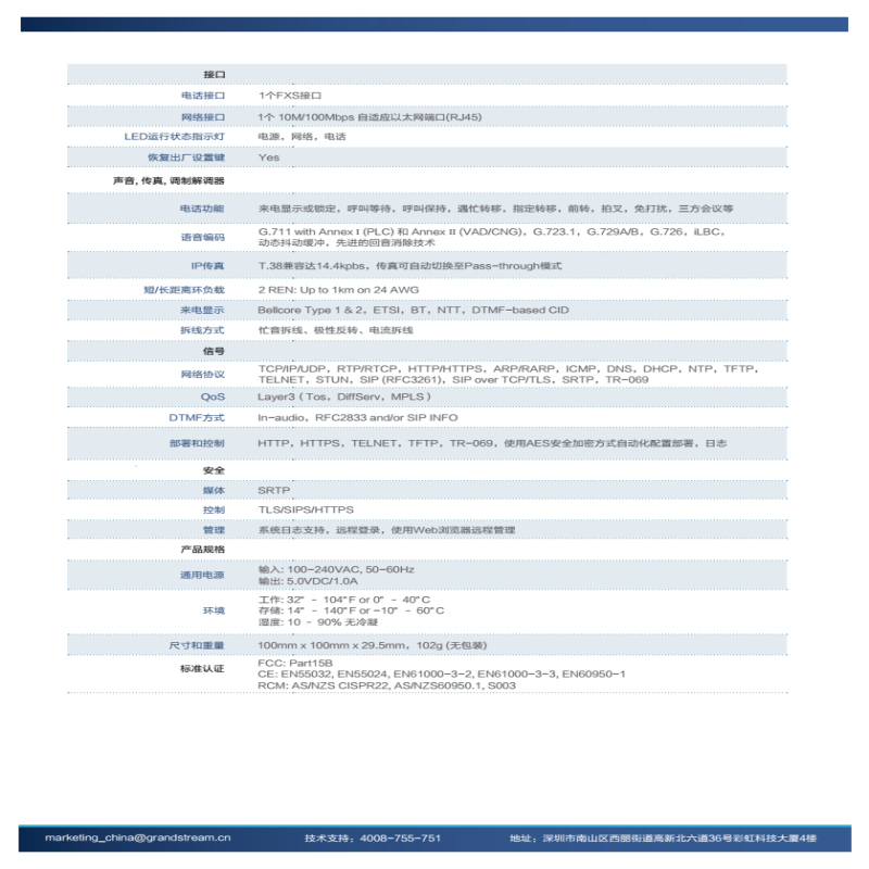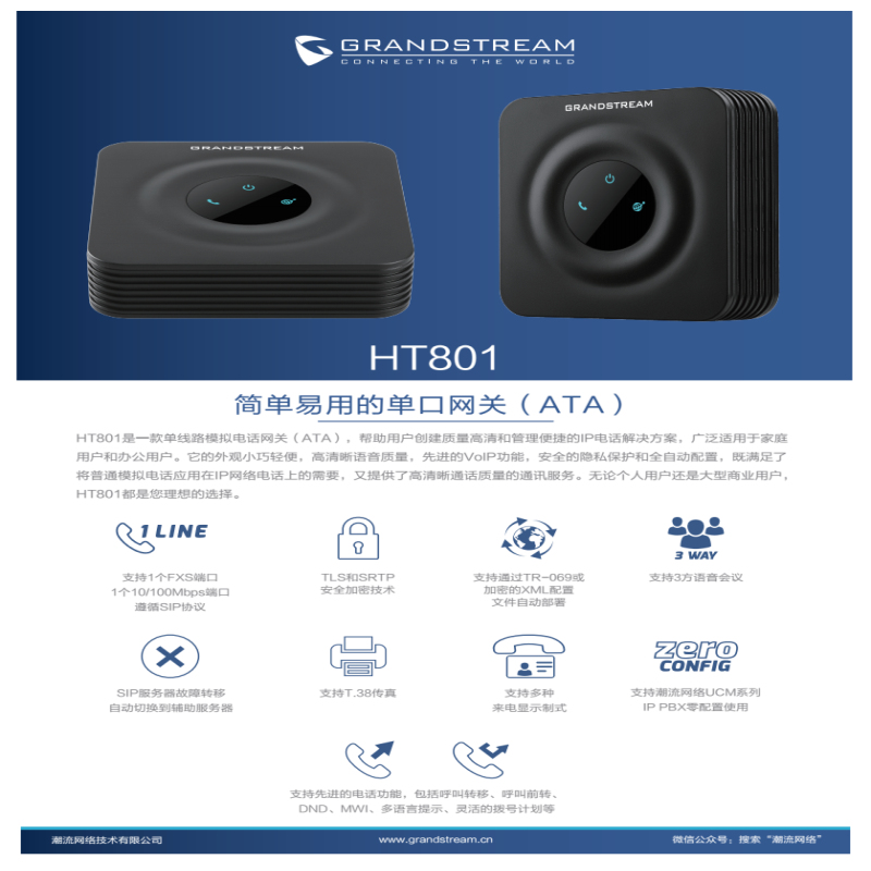 潮流网络:数字中继网关潮流网络(Grandstream)HT801/FXS IAD网关含安装调试1年保修