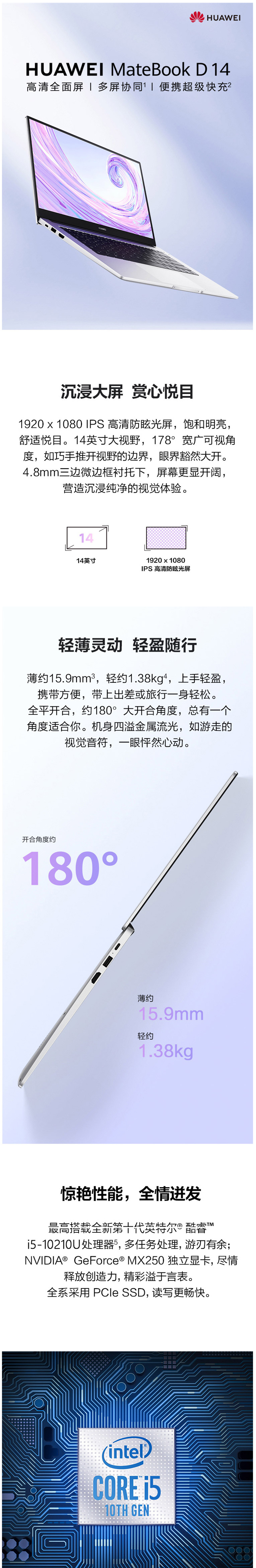 华为 matebook D14 笔记本(I7-10510U/16G/512GSSD/集显/Win10/一年保修/(含扩展坞/华为原装鼠标)