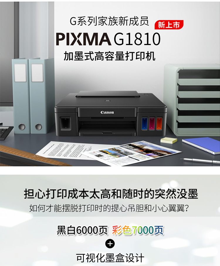 佳能(Canon)G1810大容量可加墨彩色单功能打印机(作业打印/照片打印)/三年保修