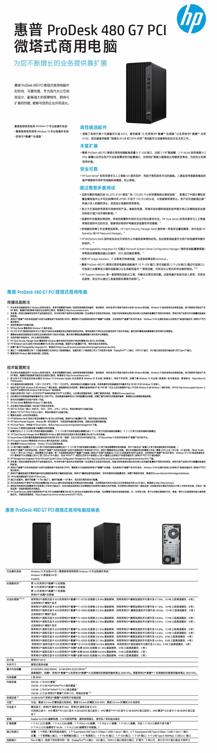 惠普 HP ProDesk 480 G7 MT 台式电脑(i5-10500/1T+256GBSSD/8G DDR4/Win10Home/有线键鼠/DVDRW/260W/3年保修/23.8液晶显示器/网络同传)