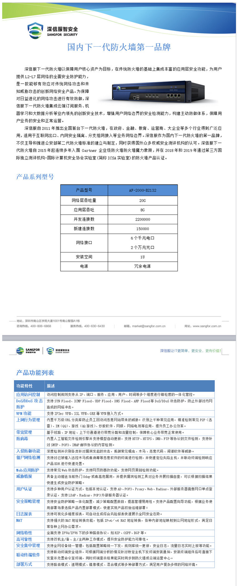 深信服 AF-2000-B2132 防火墙(含:深信服防火墙软件基础级(*1套);深信服防火墙软件增强级模块(*1套);深信服云智订阅软件(AF8.0.7及以上版本适用)(*3套);产品质保(*5年);软件升级(*5年)安装调试费用)