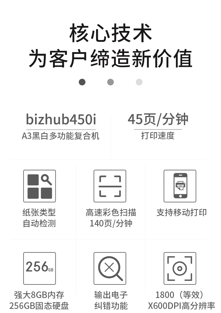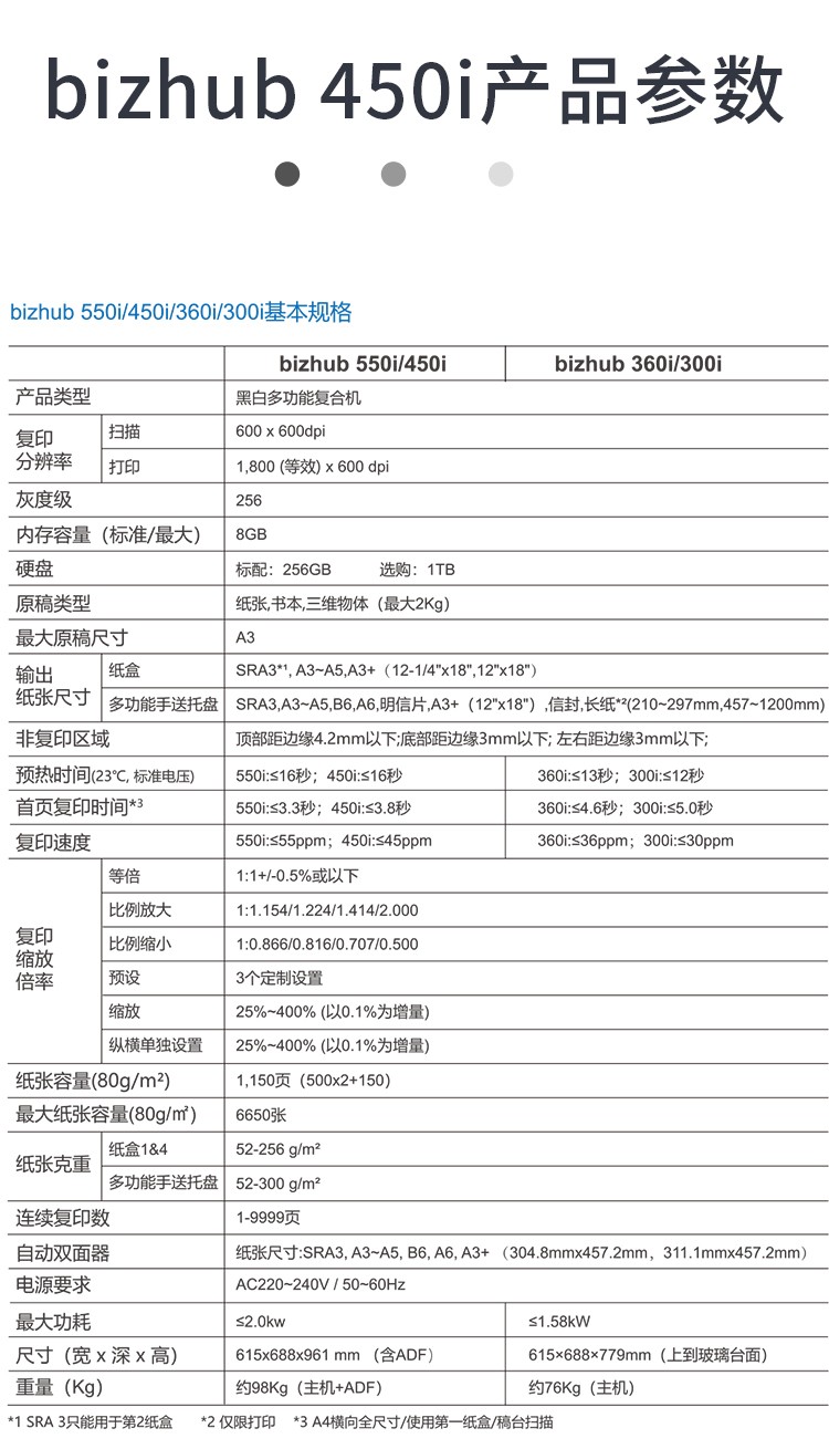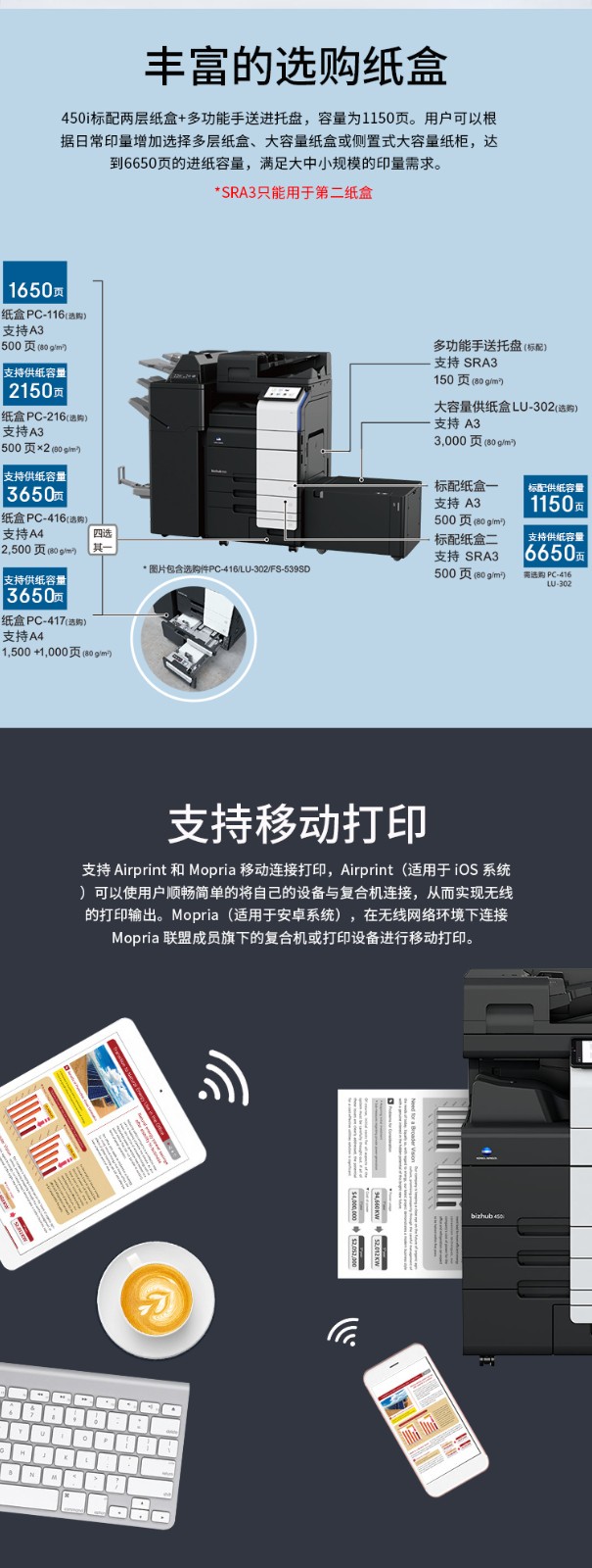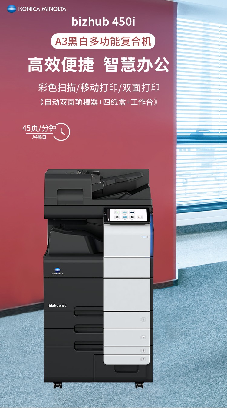柯尼卡美能达黑白复印机bizhub450i(主机+双面器+双面自动输稿器+第三纸盒-3年上门服务)
