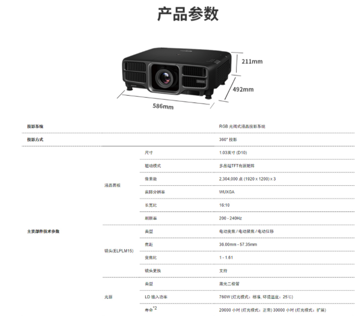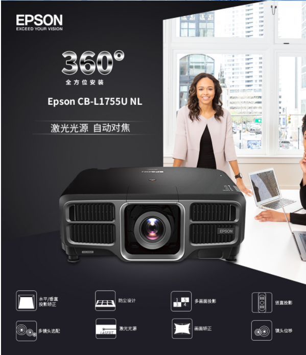 爱普生(EPSON) CB-L1755U NL含镜头 激光工程投影机(15000流明 4K超强高清 支持融合 )免费上门安装