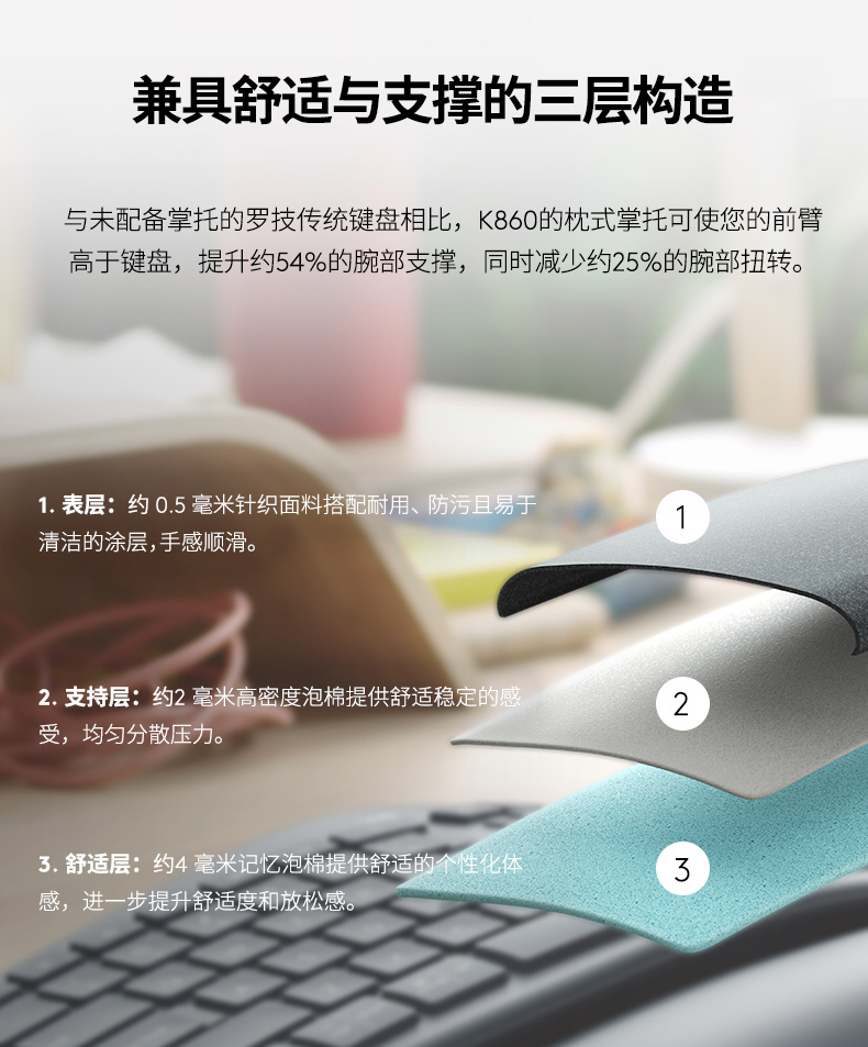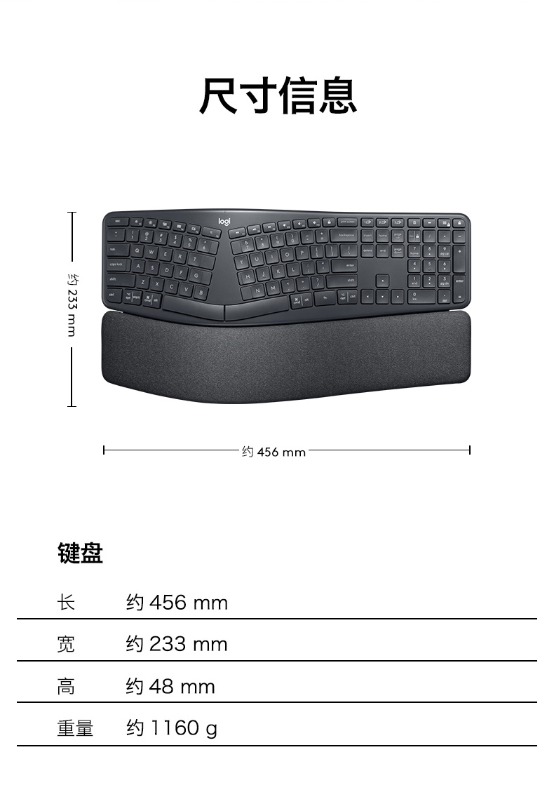 罗技(Logitech)ERGO K860 无线蓝牙键盘 多操作系统键盘 人体工学分体式键盘 多设备匹配办公键盘 K860黑色