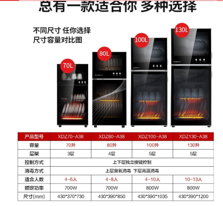 康宝XDZ70-A38 消毒柜家用小型迷你立式台式双门碗柜厨房高温消毒