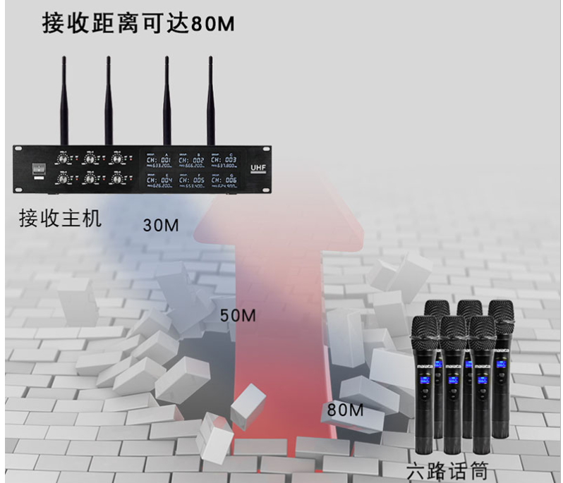万利达(Malata) W-06一拖六无线麦克风鹅颈麦耳麦领夹麦会议主持演出演讲唱歌无线话筒 接收器+领夹*6