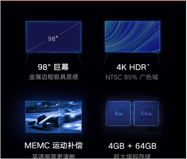 小米电视 Redmi MAX 98英寸巨幕 金属全面屏 4KHDR超高清 MEMC运动补偿 内置小爱 智能教育电视L98M6-RK红米