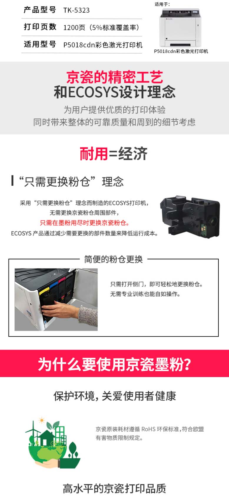 京瓷(KYOCERA)TK-5323K 黑色墨粉/墨盒 适用京瓷P5018cdn彩色激光打印机