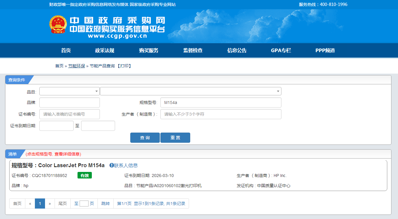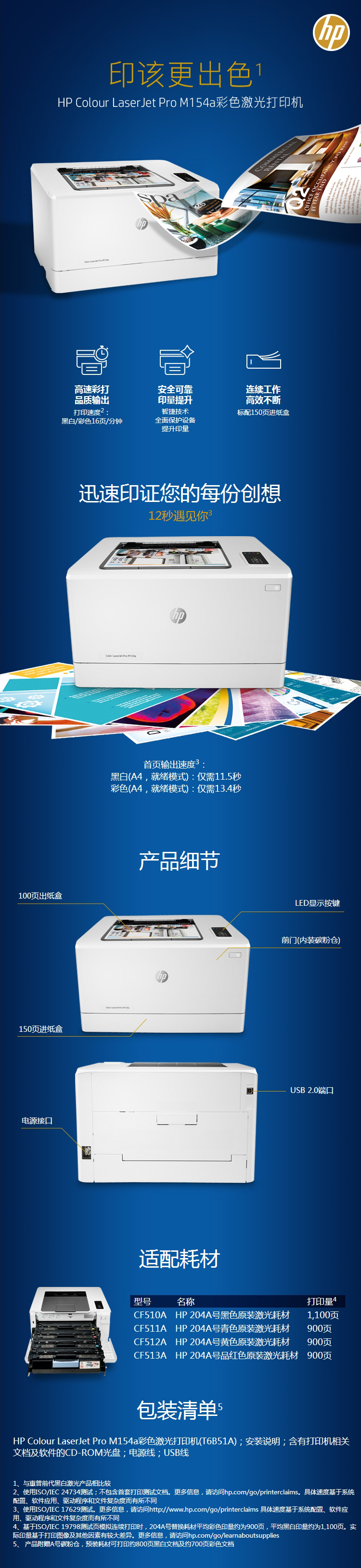 惠普(HP) M154a A4彩色激光单功能打印机 USB连接