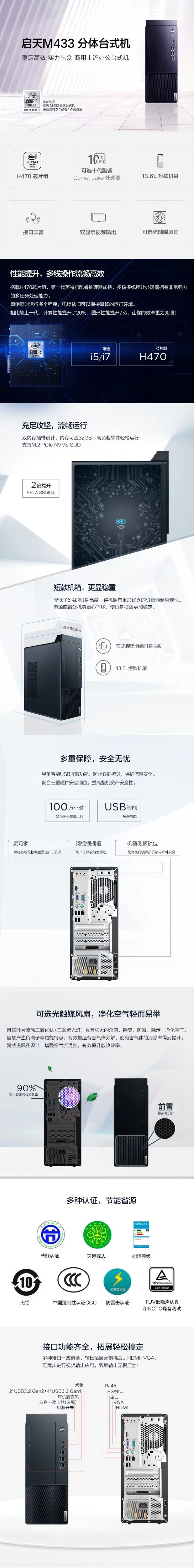 联想 启天M433-A435i5-10500/8G/1TB+256GSSD/Win10/DVDRW配联想b2413e/23.8寸液晶/三年免费保修服务