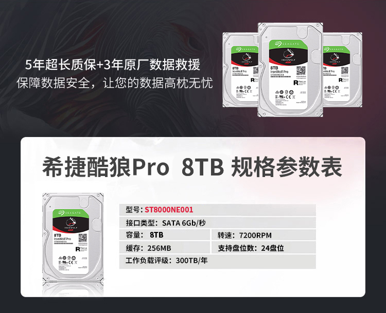 希捷8TB监控级硬盘/转速7200rpm/缓存256MB/接口SATA(含数据备份迁移服务)