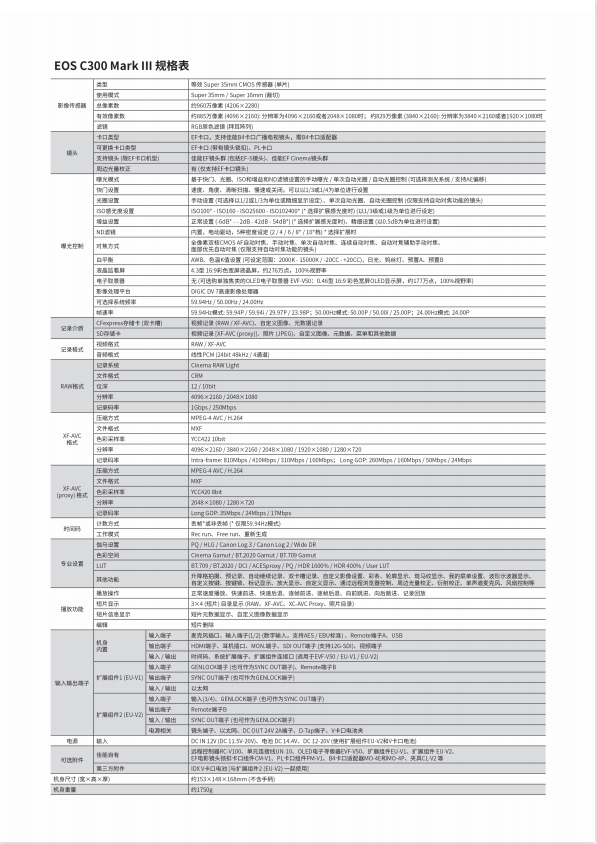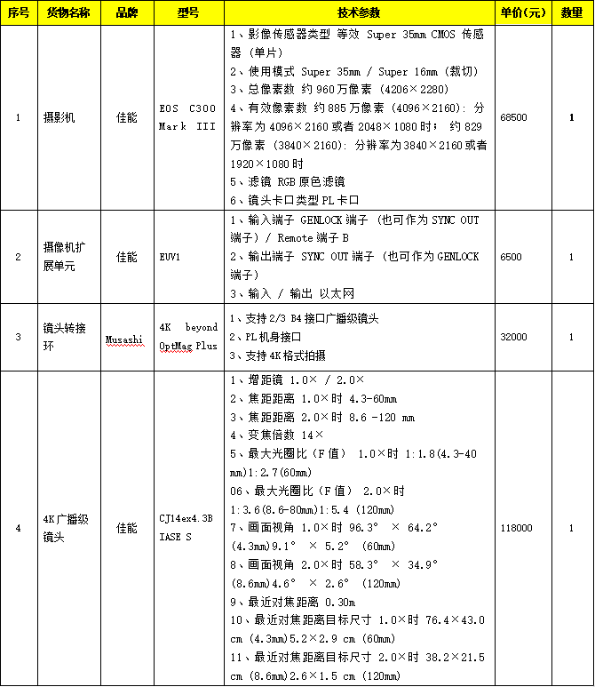 佳能 摄影机 EOS C300 Mark III+佳能 摄像机扩展单元+Musashi 镜头转接环+佳能 4K广播级镜头CJ14ex4.3BIASE S