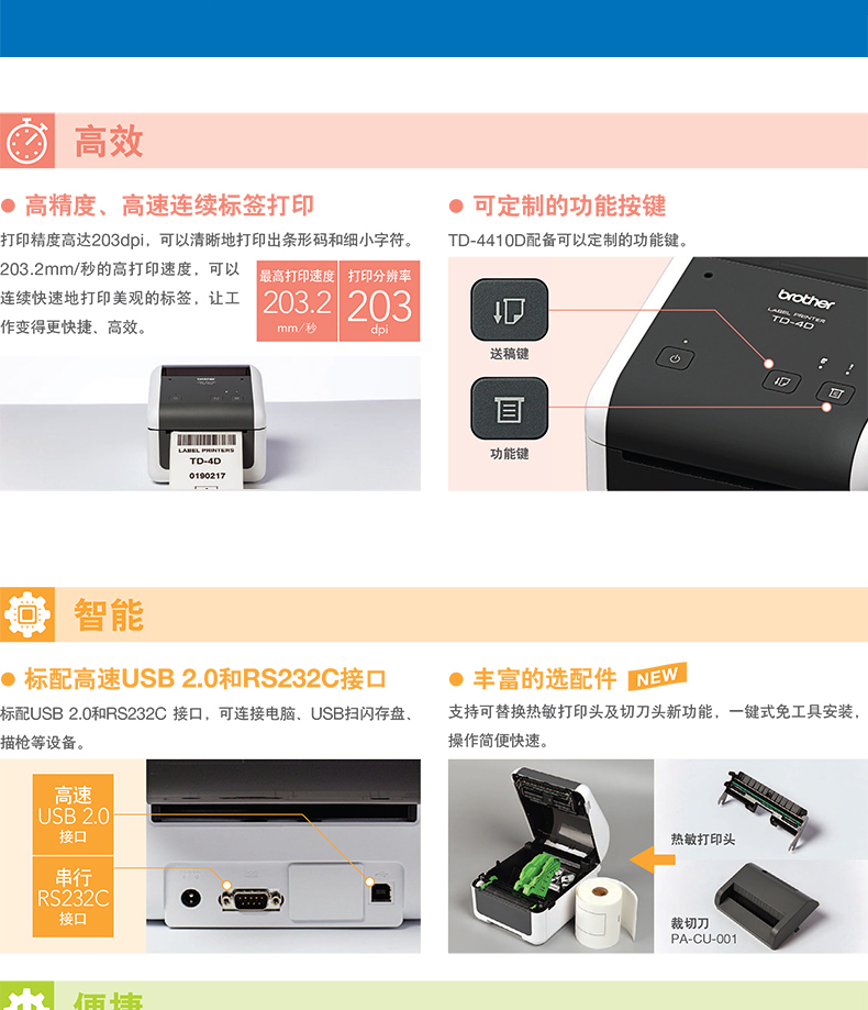 兄弟 TD-4420TN 铜版纸热转印热敏标签条码打印机