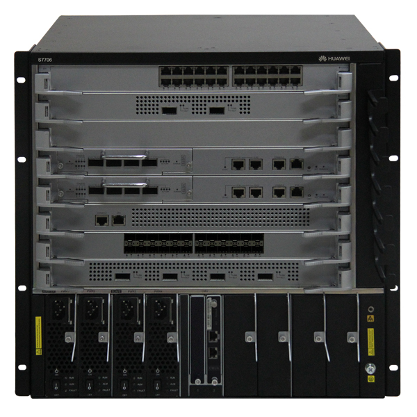S7706增强引擎组合配置(含一体化总装机箱*1,SRUED主控板*2)/48端口十兆/百兆/千兆以太网电接口板(EC1,RJ45)1块/48端口百兆/千兆以太网光接口板(EC1,SFP)1块/光模块-eSFP-GE-单模模块(1310nm,10km,LC) 10块/800W交流电源模块(黑色) 2套/S7700基本软件, V200R021C00、 IPV6功能授权 1套/3 年原厂服务
