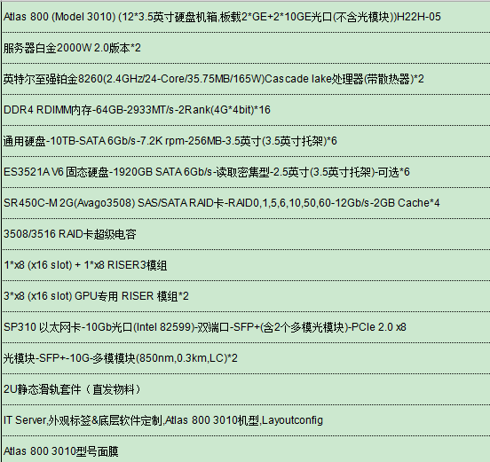 华为Atlas 800 (Model 3010)配置见主图