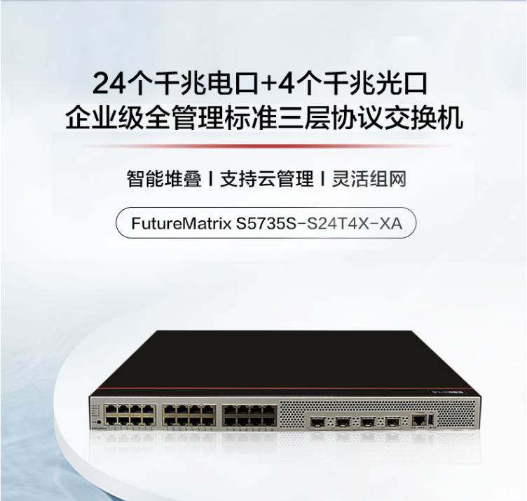 当前位置: 首页 > 政采分类 > 电脑、办公设备 > 电脑整机 > 台式电脑 > 华为数通智选交换机S5735S-S24T4X-XA(24个10/100/1000BASE-T以太网端口,4个万兆SFP+) 交换容量336Gbps/3.36Tbps,包转发率108/126Mpps,支持双电源,自带1个60W交流电源,含4根5米单模跳线,1年保修