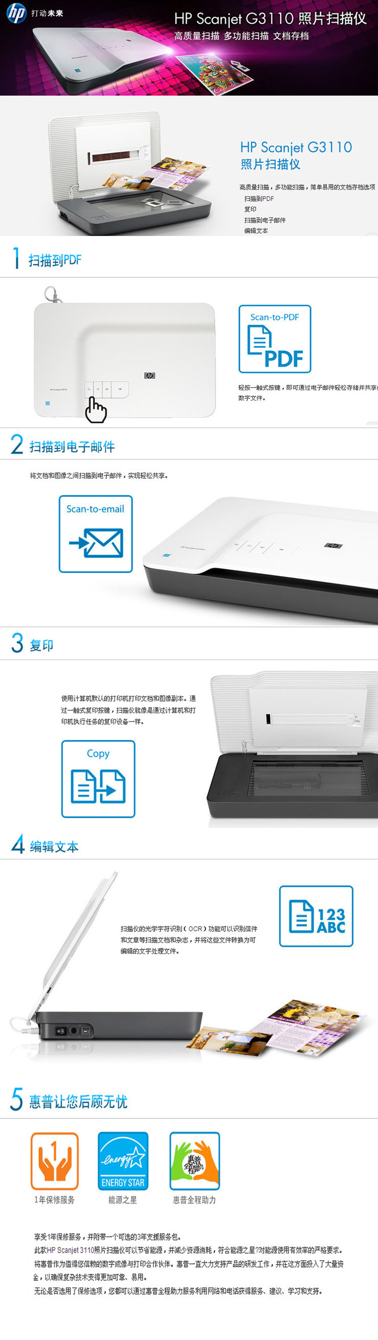 惠普(HP) 平板式照片扫描仪 G3110 黑白