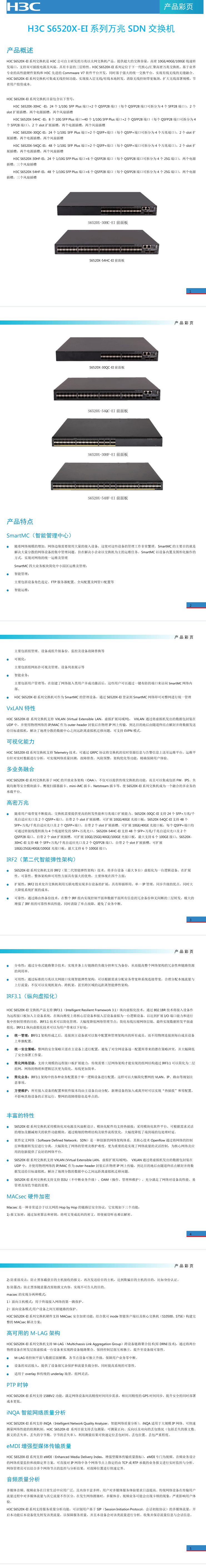 H3C S6520X-30HF-EI 24口汇聚交换机:交换容量 2.56Tbps;包转发率1260Mpps;配置:24个万兆SFP+端口,6个100GE QSFP28端口,12个万兆多模模块,含2个交流电源,1根40G高速线缆,3年保修,含安装调试
