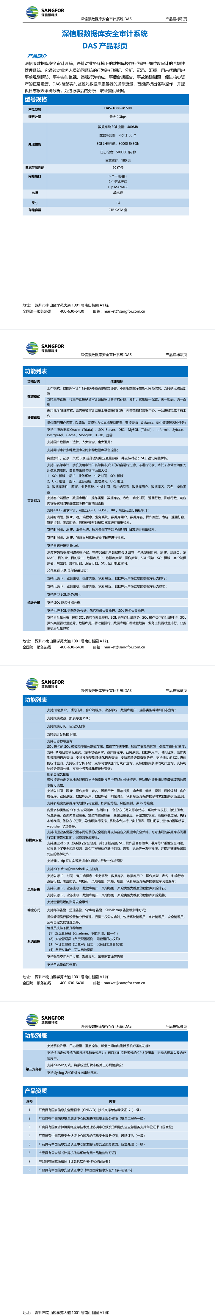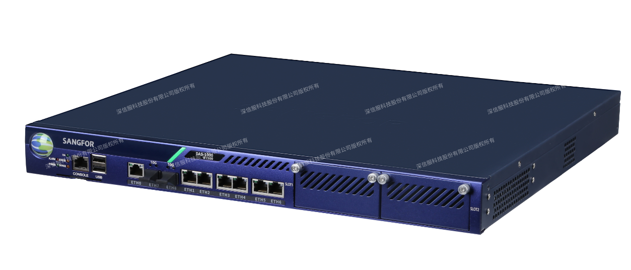 深信服数据库安全审计系统DAS-1000-B1500 硬件参数:规格:1U,内存大小:8G,硬盘容量:2T SATA,电源:单电源,接口:6千兆电口+2万兆光口SFP+。