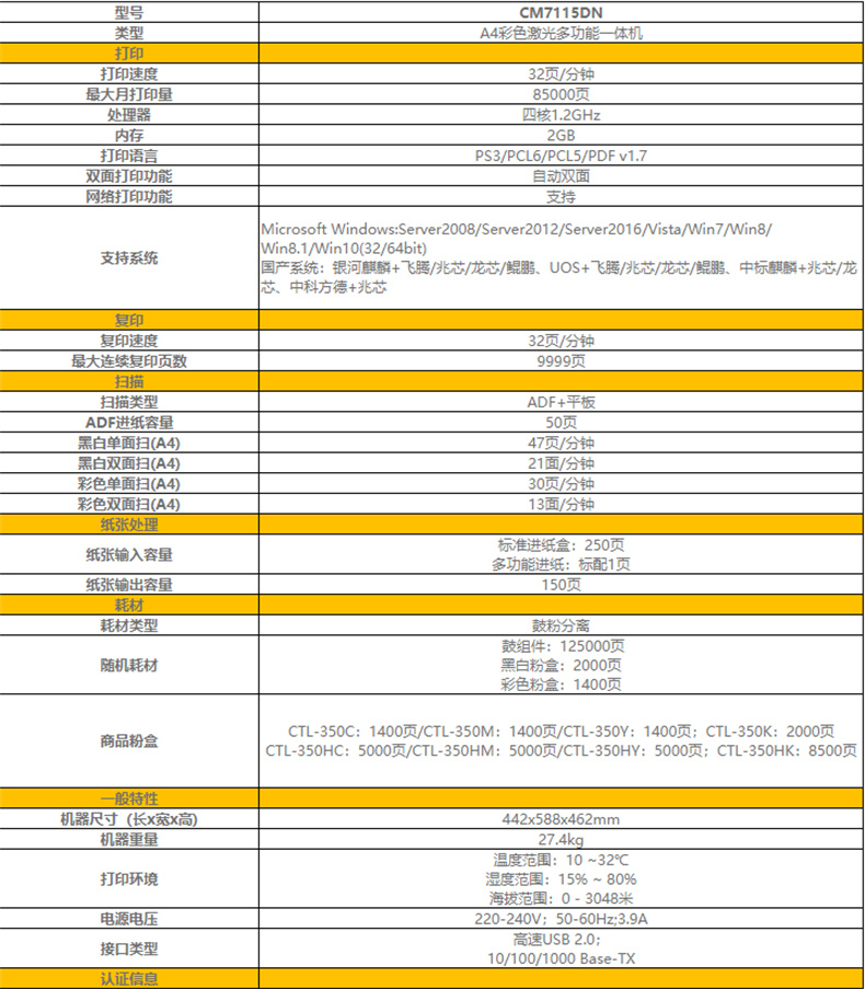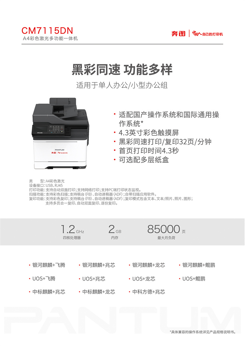 奔图 CM7115DN A4彩色激光多功能一体机