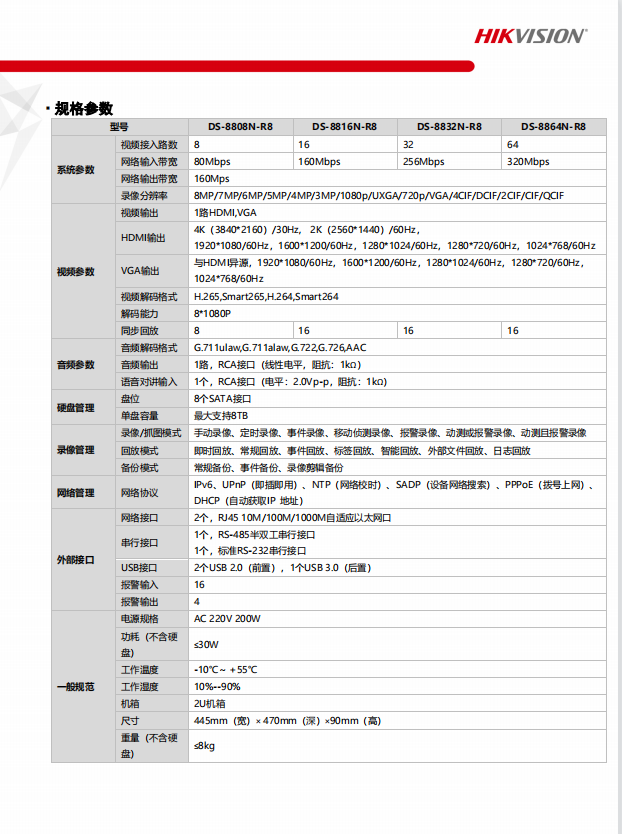 海康威视DS-8864N-R8网络监控硬盘录像机