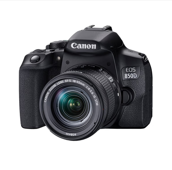 佳能(Canon)EOS 850D 单反相机套机 (EF-S 18-55mm f/4-5.6 IS STM 单反镜头)+单反相机包+卡色(Kase)G-MCUV镜 58mm+闪迪128G SD卡+沣标FB-360读卡器 +科大讯飞智能无线麦克风 C1一拖二领夹麦克风+威高清洁套装+单反相机包