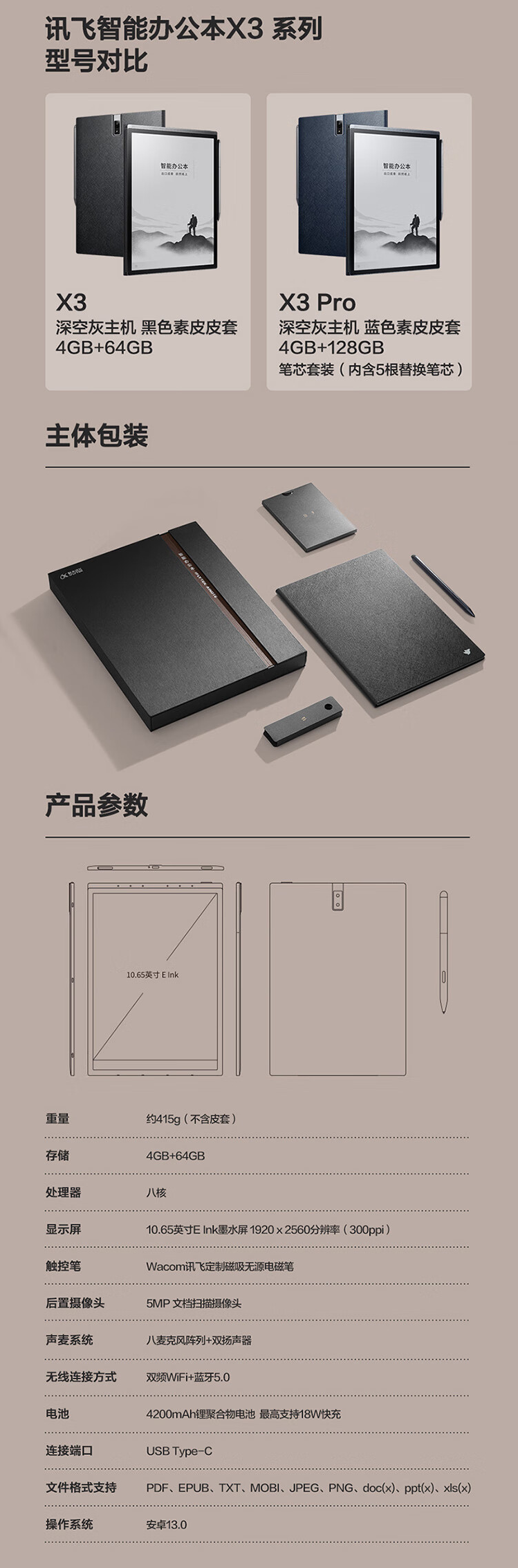 科大讯飞智能办公本X3 10.65英寸 语音转写电子书阅读器 墨水屏电纸书 电子笔记本