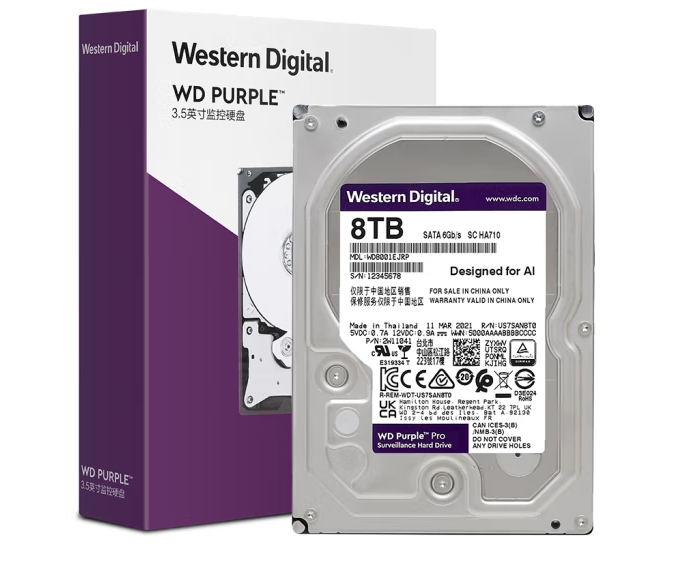 西部数据 监控级硬盘 WD Purple 西数紫盘pro 8TB 7200转 256MB SATA CMR (WD8001EJRP)