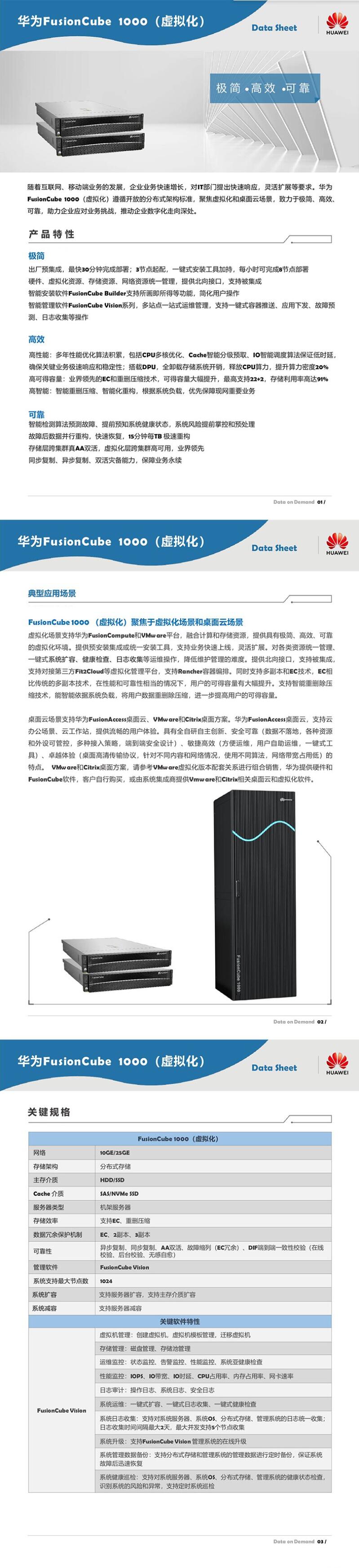 华为FusionCube超融合服务器(2颗24核/2.2GHz 处理器/6*32GB DDR4内存/2*600GB SAS HDD硬盘/支持RAID0,1,10/2*GE,2*10GE(含光模块),2*16Gb HBA卡)