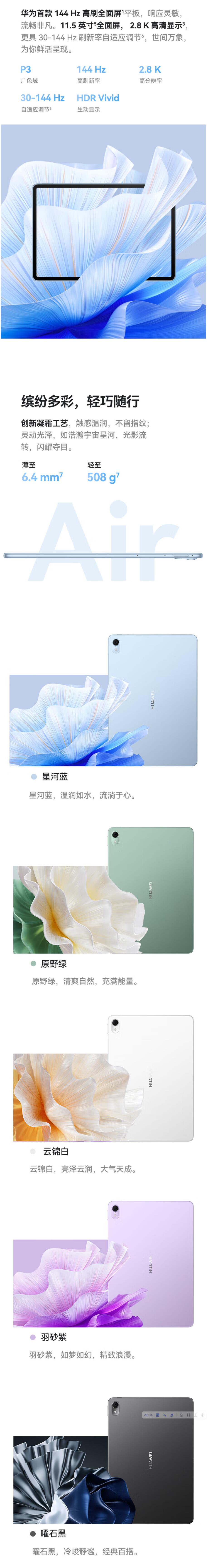 华为MatePad Air 无纸化桌面终端(11.5”/8G+128G/含贴膜)