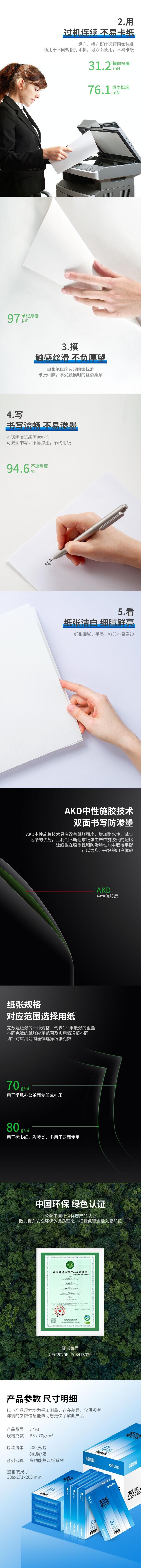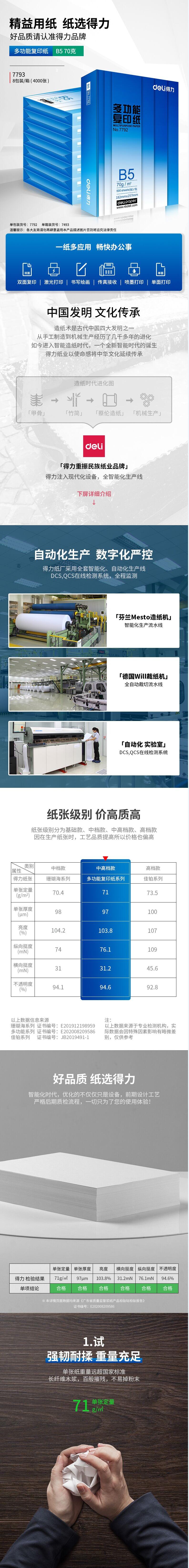 得力7793复印纸B5 70g 500张/包 8包/箱 单位:箱