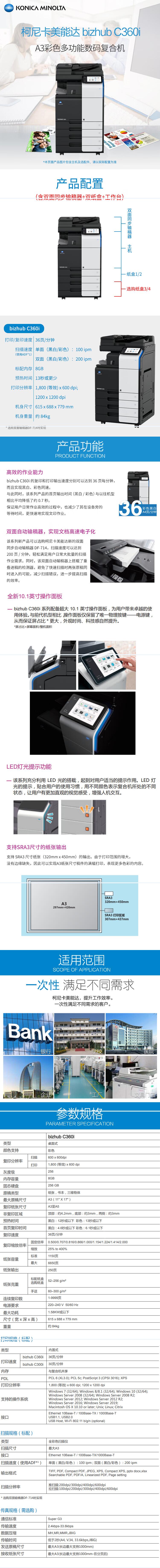 柯尼卡美能达彩色复印机/KONICAMINOLTA bizhub C360i (含双面送高清、双纸盒、网络打印、扫描、工作台)