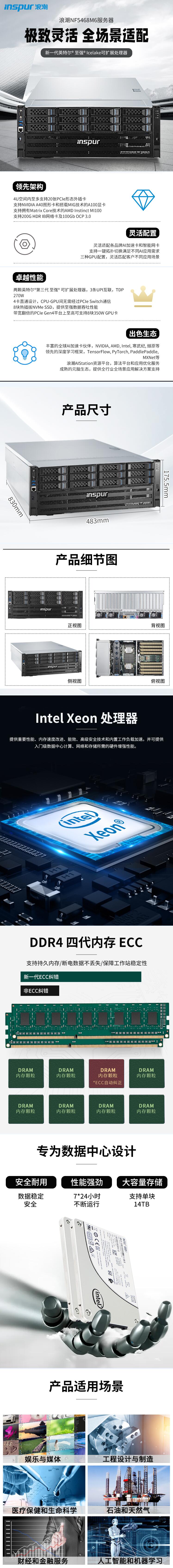 浪潮NF5468M6服务器(6338*2/64G 3200*8/3.84T*2+8*2.4T/8204-2G/4*GE+2*10GE+SFP/3090*4/2200W*4/三年保修服务)