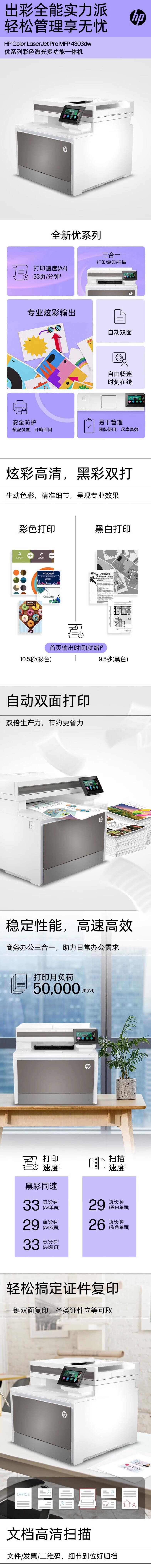 惠普 Color LaserJet Pro MFP 4303dw A4彩色激光多功能打印机