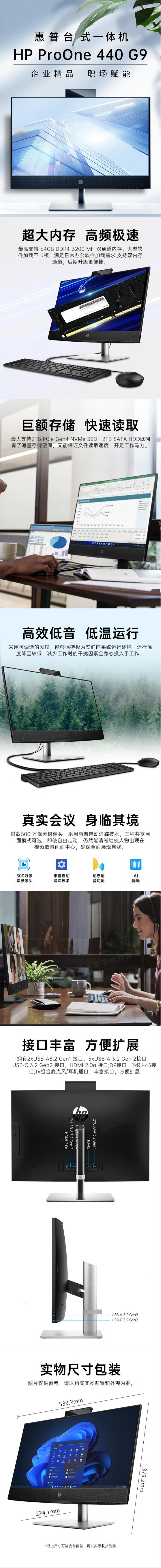 惠普 ProOne440G9一体机电脑 23.8寸FHDNTAiO/NewCorei5-12500T/8G DDR4 3200/512g SSD/Windows11Home64位/120W 89%高效节能电源/23.8"三边微边框IPS宽屏LED背光防眩光液晶显示器(1920X1080)/双频无线网卡带蓝牙5.2/俯仰角度可调固定高度底座