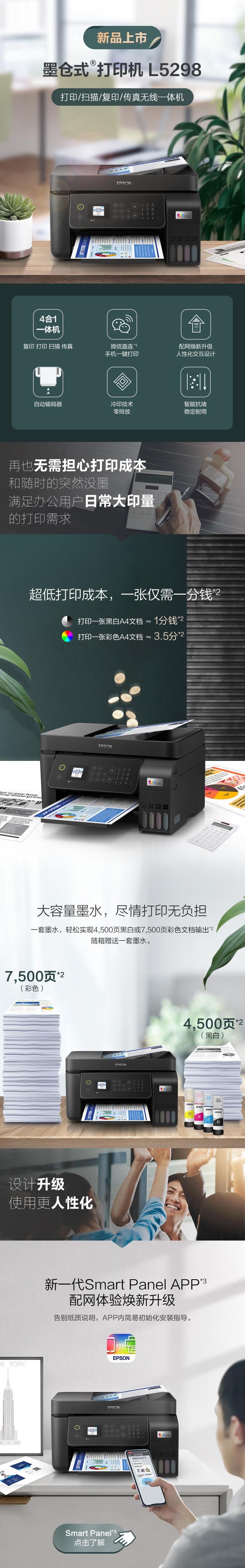 爱普生(EPSON)墨仓式 L5298 彩色喷墨传真一体机