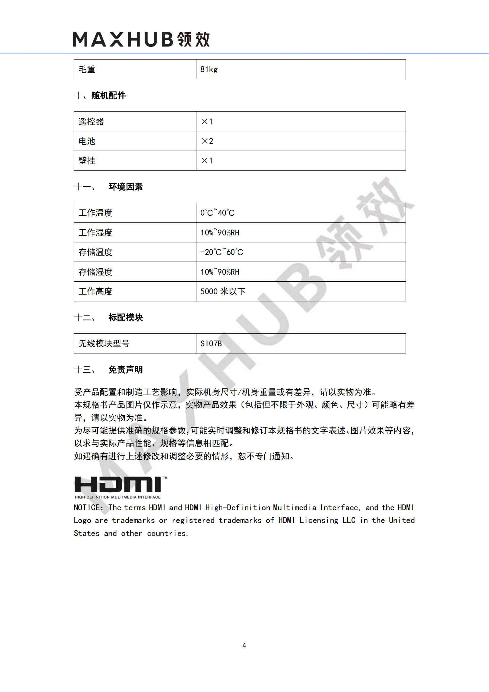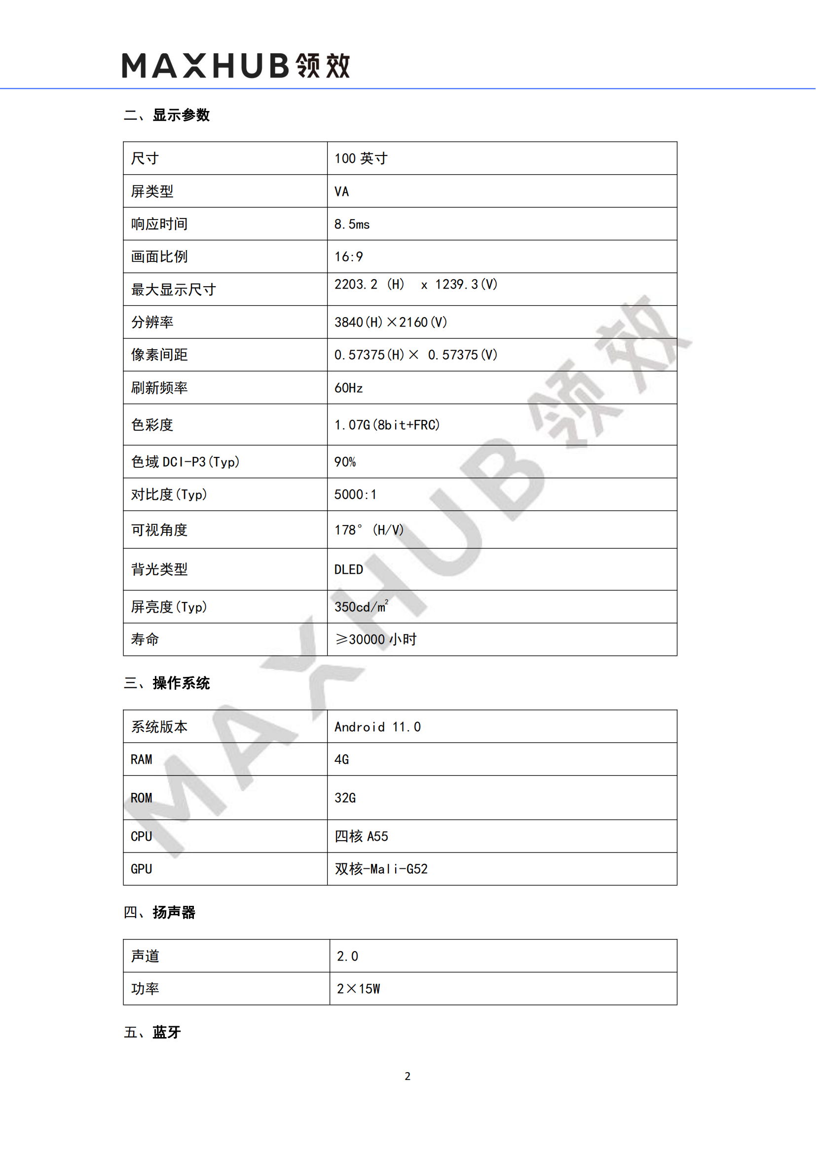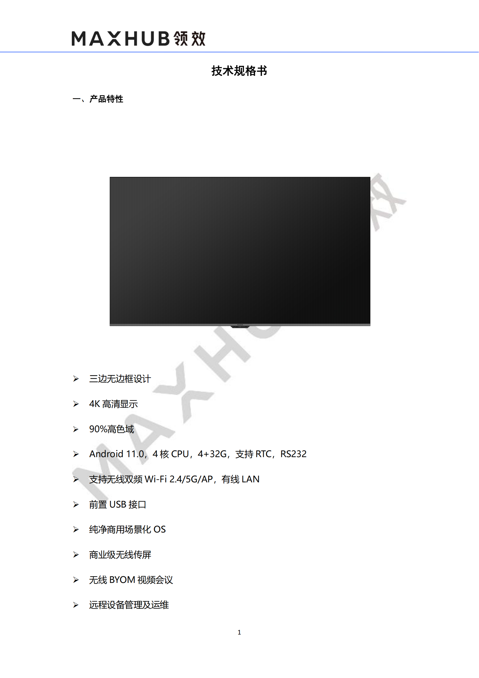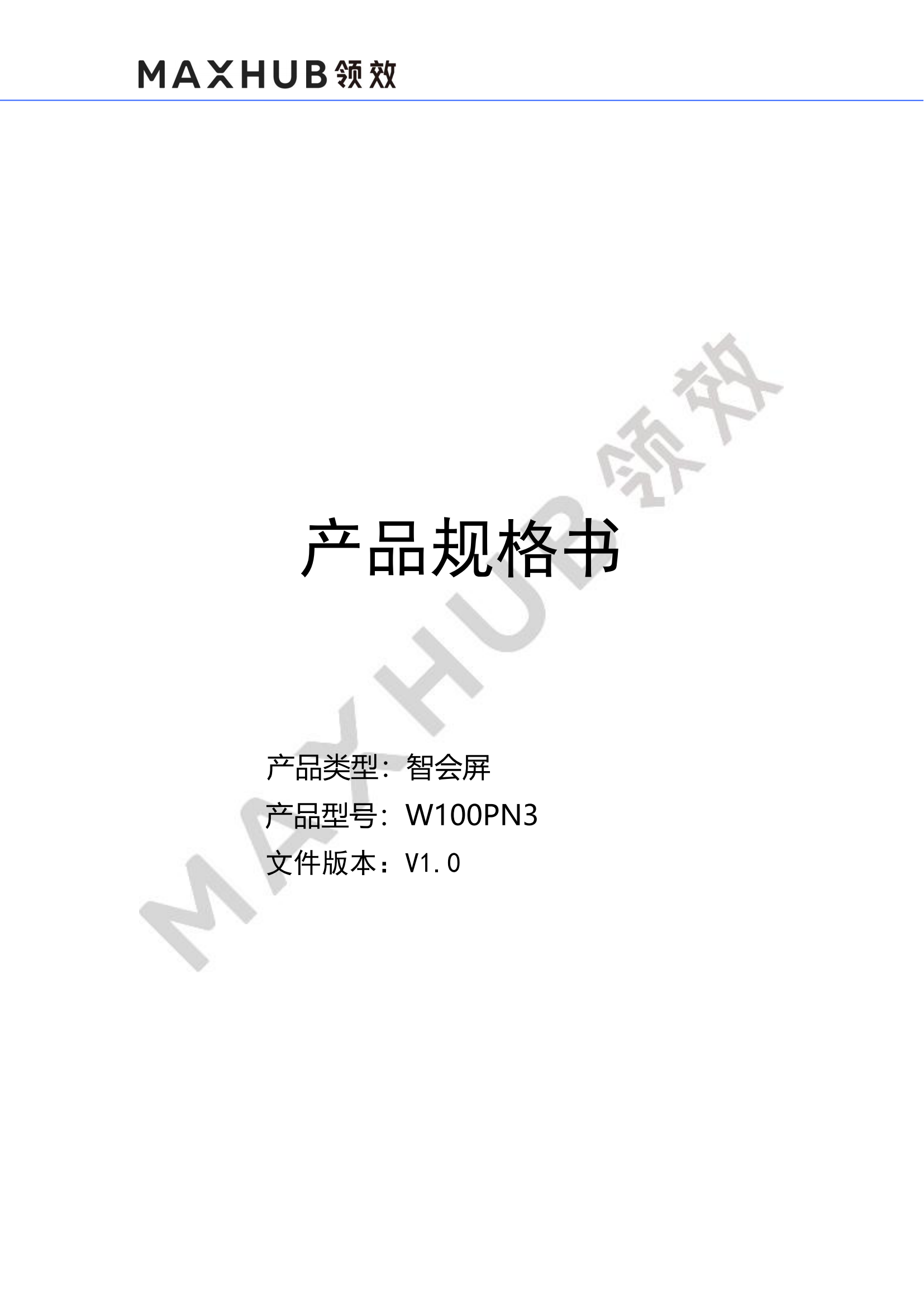MAXHUB W100PN3 100寸智会屏-标准款(含安卓 4 核 A55CPU+2 核 G52 GPU 高性能处理器 +Android11.0 系统+4G内存+32存储)