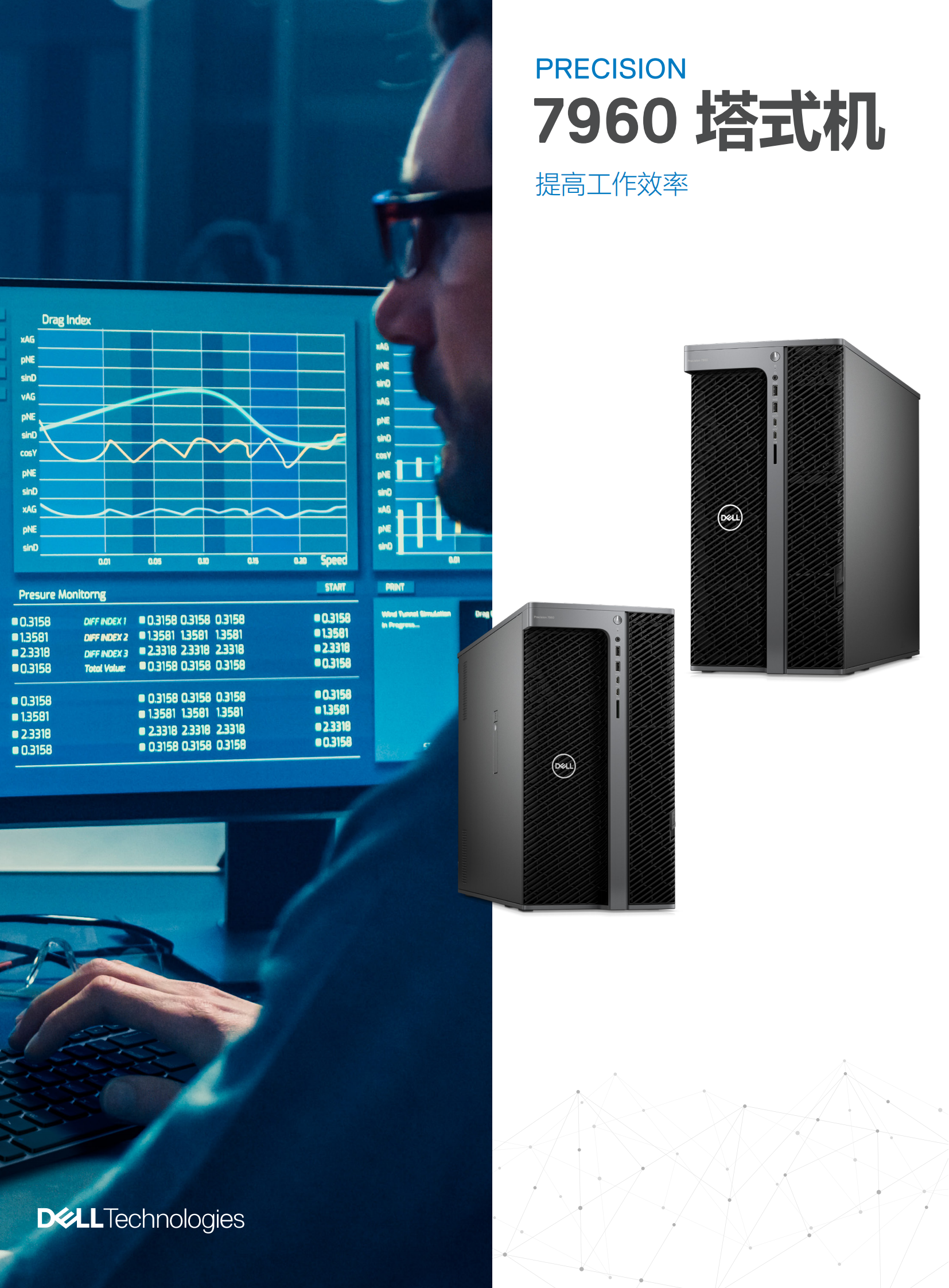 戴尔Precision T7960高性能GPU服务器深度学习仿真AI工作站定制 至强W9-3495X(56核睿频4.8GHz)128G内存/1T+8T HDD,RTXA6000-48G,windows工作站专业版,3年原厂上门维修