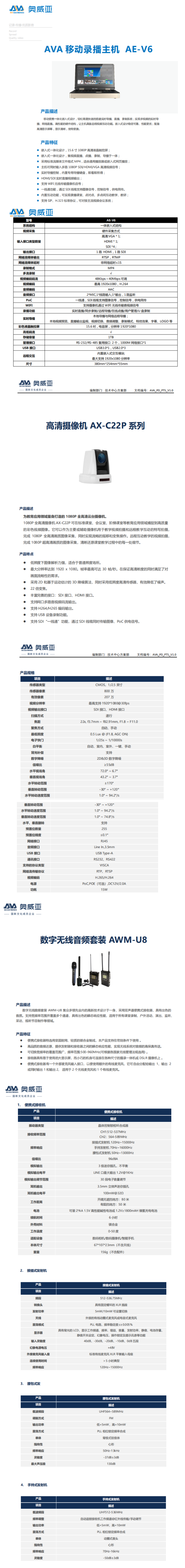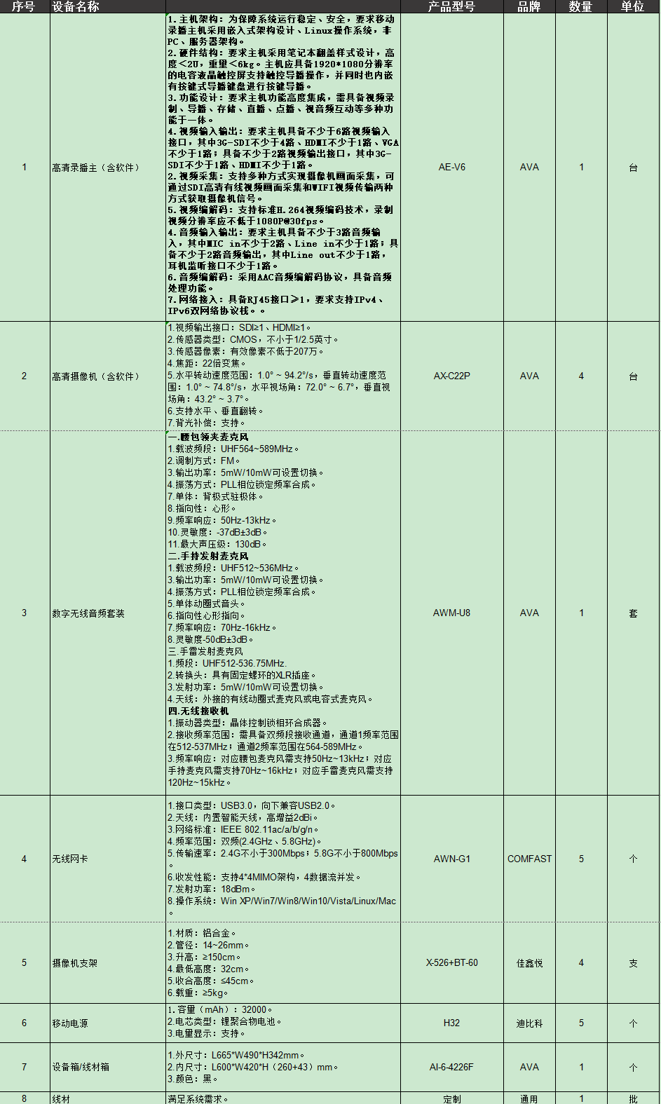 便携式移动录播系统(AVA高清录播主机AE-V6(含软件)*1/AVA高清摄像机AX-C22P(含软件)*4/AVA数字无线音频套装*1/无线网卡*5/摄像机支架*4/移动电源*5/设备箱线材箱*1/含安装调试/三年质保)