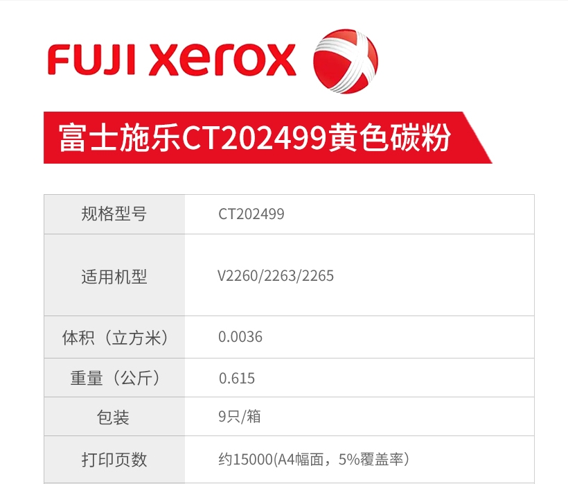当前位置: 首页 > 政采分类 > 电脑、办公设备 > 设备耗材 > 墨盒、墨水 > 富士胶片墨粉(CT202499)黄色