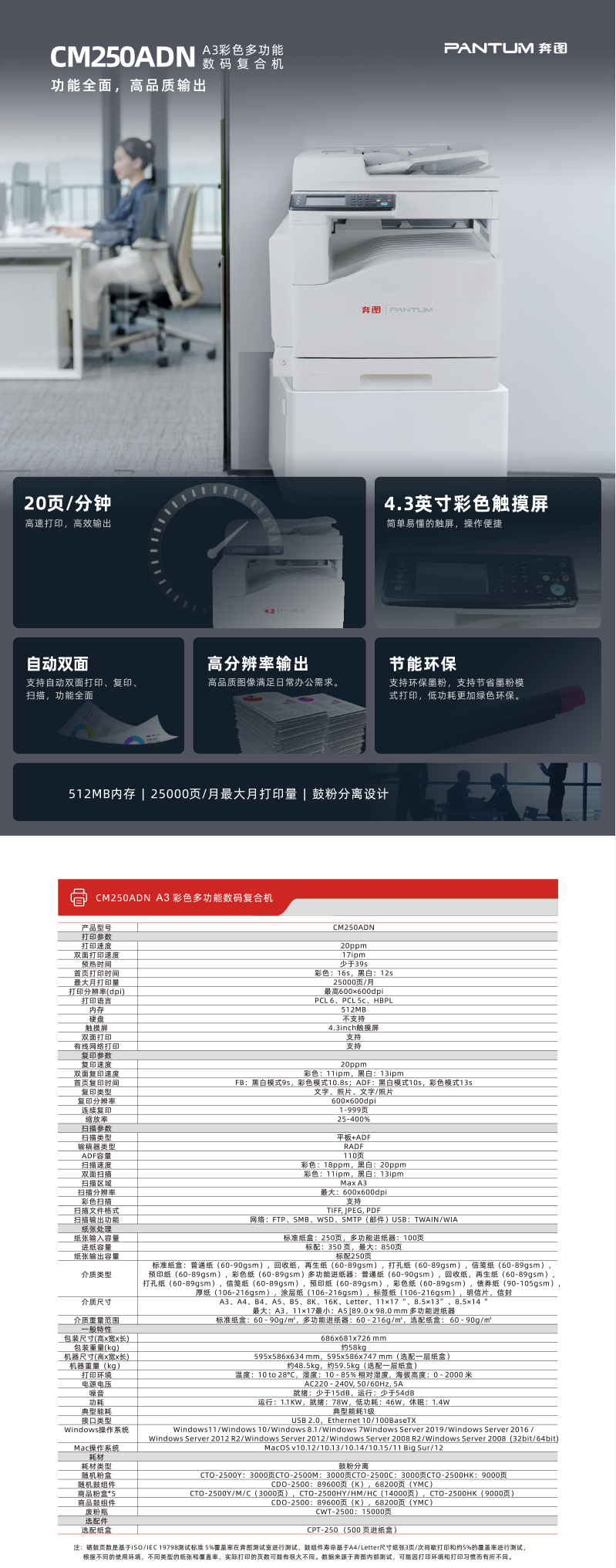 奔图 CM250ADN A3彩色多功能数码复合机
